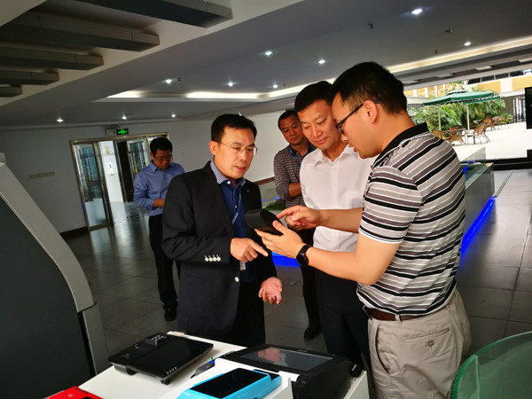 區領導一行人首先參觀了證通電子產業園,對公司整體的生產、研發能力進行了調研,并了解了公司當前的主要產品。經過二十多年的發展,證通電子已成為涵蓋金融科技、IDC及云計算、LED照明三大業務板塊的高新技術企業,產品囊括自助終端、支付終端、密碼加密鍵盤、自助部件、軟件服務、LED產品、云基礎設施服務等。