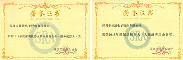 證通榮獲了2018機(jī)器人“技術(shù)創(chuàng)新企業(yè)”和“十大集成應(yīng)用”兩項大獎