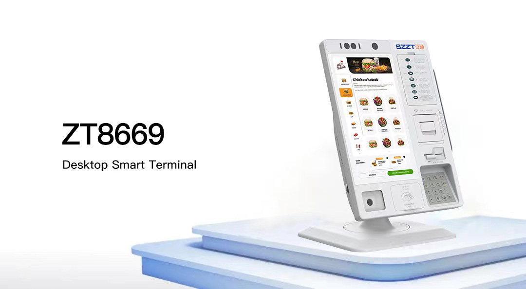 ZT8669是一款桌面式智能服務終端,集成11.6英寸高清觸摸屏、雙攝像頭、Android 9操作系統和金屬加密密碼鍵盤,隨時隨地為客戶提供無縫支付服務體驗。